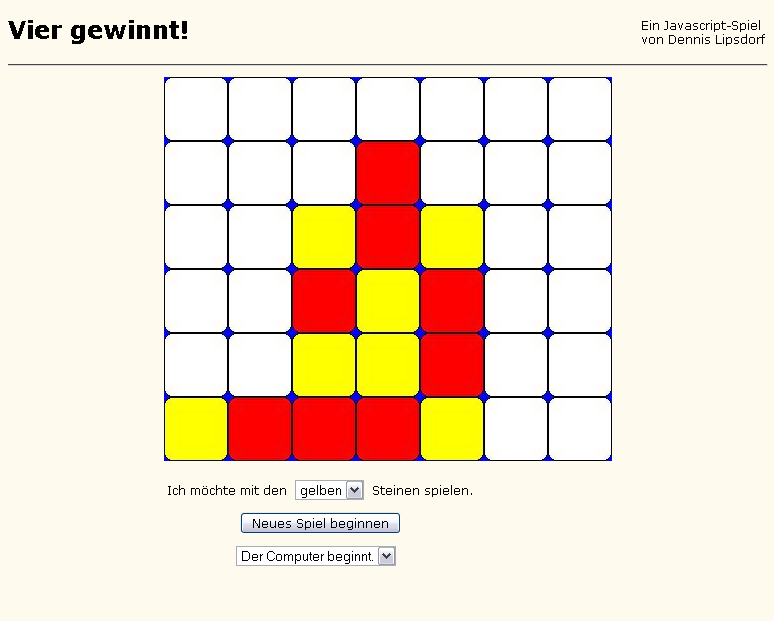 "Meine kurz vor der Entwicklung dieses Spiels gewonnenen Kenntnisse über Suchalgorithmen wollte ich durch deren Einsatz in einem dafür geeignetem Umfeld testen und so entwickelte ich eine KI für Vier gewinnt. Ich bin mit dem Ergebnis sehr zufrieden."
